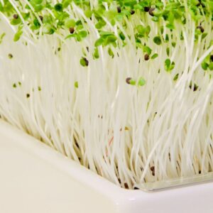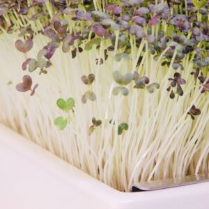Microgreens varieties in the gift edition: 2x radish, 2x red cabbage, 2x mustard, 1x broccoli, 1x rambo radish, 1x garden cress, 1x rocket – the perfect mix of mild and aromatic microgreens.